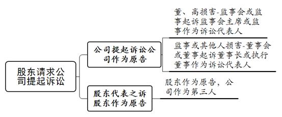 通常情况下,当发生损害公司利益行为时,应由公司作为原告直接向侵权行为人行使请求权,要求其对公司承担赔偿责任。需要注意的是,符合持股条件的股东可以书面请求公司相关机构以公司名义就损害行为提起诉讼,此时原告仍为公司。具体而言:第一,当董事、高级管理人员损害公司利益时,股东可以书面请求监事会或不设监事会公司的监事起诉;此时应当列公司为原告,由监事会主席或监事代表公司进行诉讼,监事会主席或监事列为公司的诉讼代表人。第二,当监事或他人损害公司利益时,股东可以书面请求董事会或董事起诉;此时应当列公司为原告,由董事长或执行董事代表公司进行诉讼,董事长或执行董事列为公司的诉讼代表人。